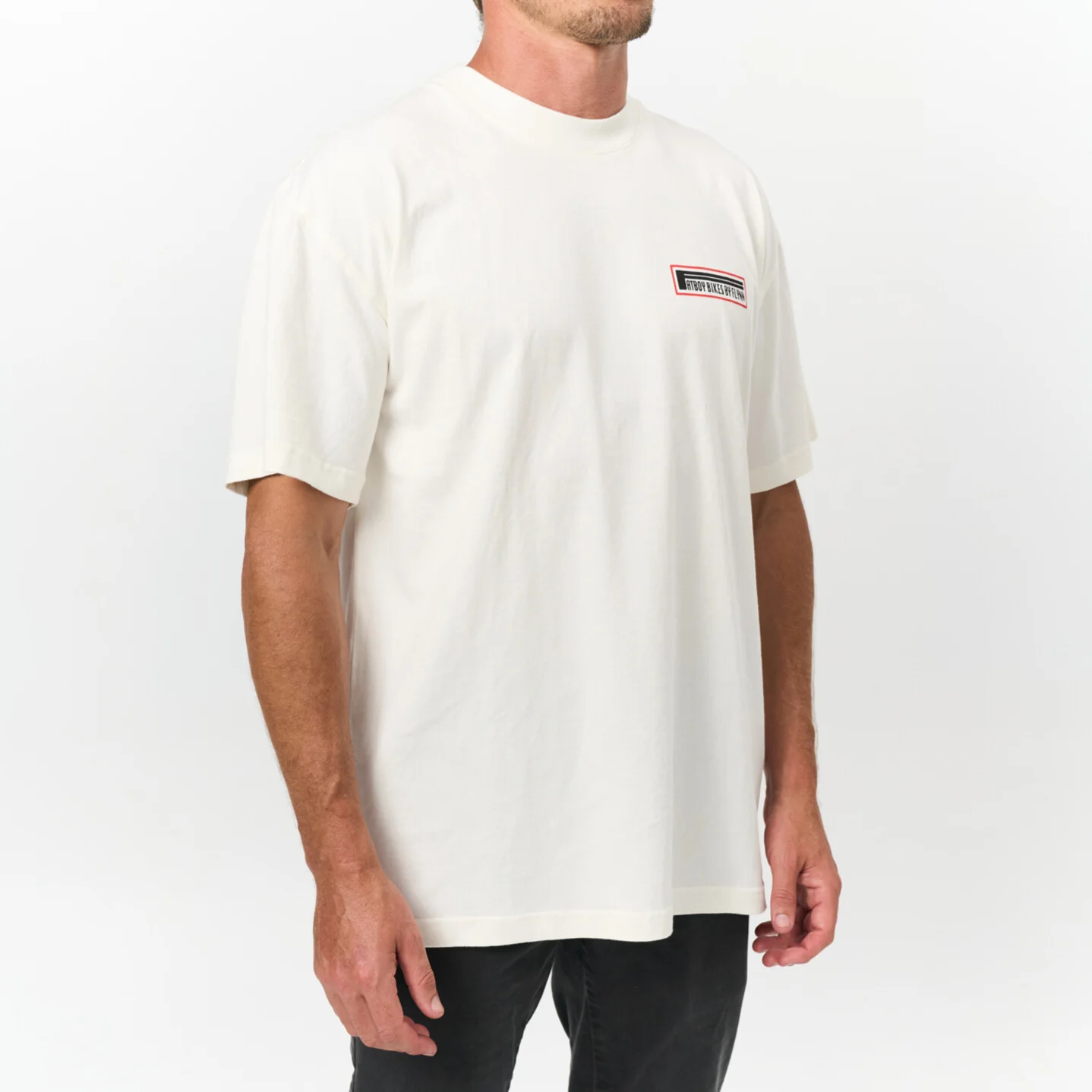 Upgrade your wardrobe with the FAT BOY FIVE BY FLYNN T-shirt, a stylish blend of retro inspiration and modern comfort. Made from premium-quality cotton, this off-white tee features a bold, aviation-style graphic on the back, incorporating red, white, and blue accents for a standout look.